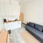 The apartment features an equipped kitchen with a fridge and a cooktop. The nearest bus station Krasotaju iela is 700 metres away.