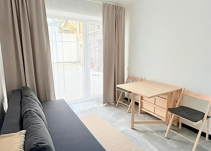 Quiet, Charming Studio Apartment On Ground Floor Riga, di 14 m²,include una terrazza e si trova a 150 m da Skurstenslaukis un murnieks. L'appartamento è collocato nel distretto Maskavas forstate, a 10 minuti in auto dalla Riga Stone Bridge e a soli 2 km dalla Casa del Gatto.